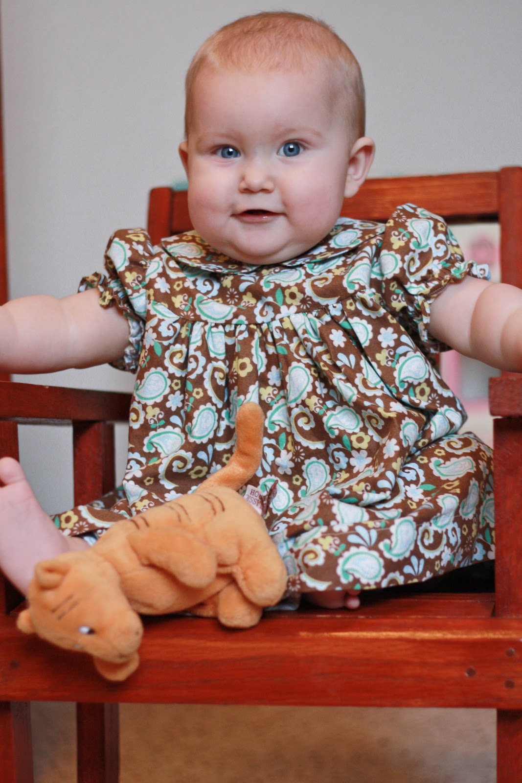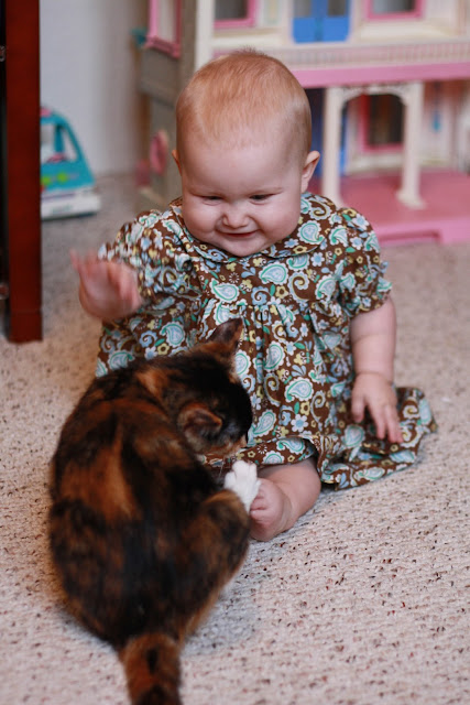 I hope your not tired of seeing pictures of Delia, because she was being too cute today while she was modeling a dress I made her.